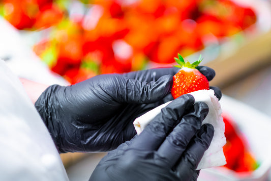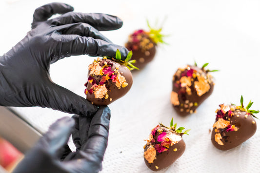 Unsere Beeren, Macarons und Datteln werden in unserer Münchner Manufaktur in feinster Handarbeit für dich gefertigt. Maschinell wird bei uns nur die Schokolade geschmolzen. Je nach Design und Toppings sind bei der Veredelung bis zu acht Produktionsschritte nötig. Wenn du mehr darüber erfahren möchtest wie deine Lieblingsbox bei uns in der Manufaktur gefertigt wird, schau gerne hier vorbei.
