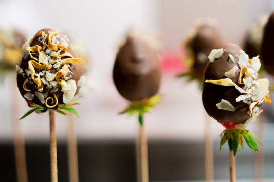 Für unsere veredelten Schokobeeren und Macarons verwenden wir feinste Schweizer Schokolade aus einem 100% nachhaltigen und nachverfolgbaren Anbau. Hochwertige Toppings machen unsere Erdbeeren und Macarons zu einem einzigartigen Erlebnis – optisch und geschmacklich.